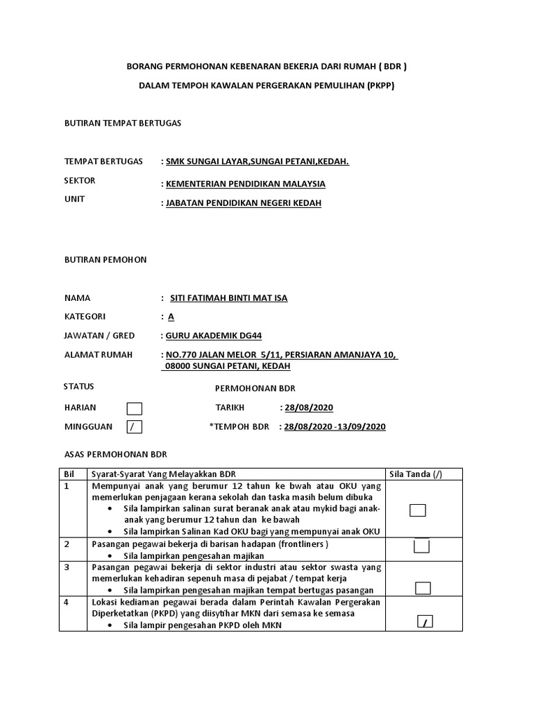 Menteri pendidikan dan kebudayaan nadiem anwar makarim telah menerbitkan surat edaran nomor 36962 t. C Permohonan bekerja secara BDR perlu dikemukakan untuk kelulusan Pendaftar. A Salinan Kad Pengenalan Pemohon dan SuamiIsteri Jika Berkenaan.