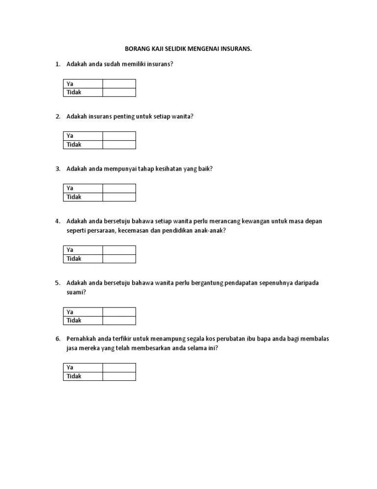 Borang Kaji Selidik Mengenai Takaful Cute766
