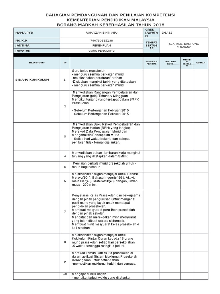 Contoh Borang Keberhasilan Guru 2020 Cute766