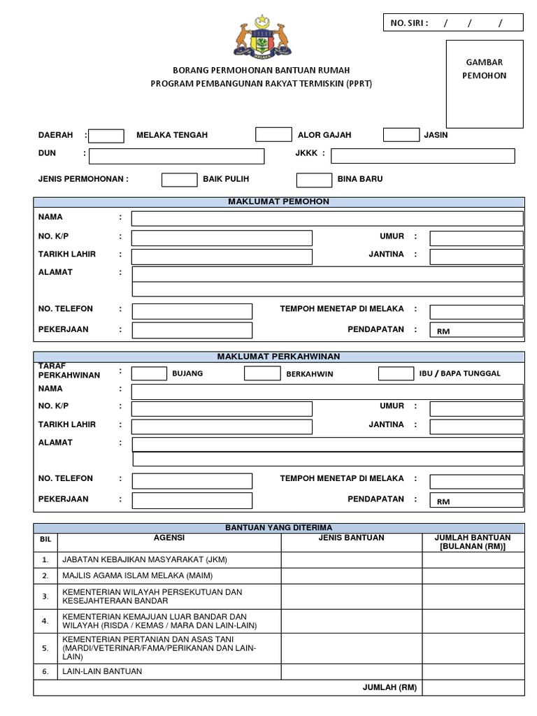 Borang permohonan program bantuan rumah. Permohonan Rumah Bina Negara RISDA 1. Mampu Milik RM 140001 hingga RM 250000 PERCUMA GAMBAR - --- --- - BORANG PERMOHONAN PROGRAM RUMAH PERAKKU. Turut dikongsikan adalah kumpulan sasar yang layak menerima bantuan PPRT dan lain-lain maklumat berkaitan.