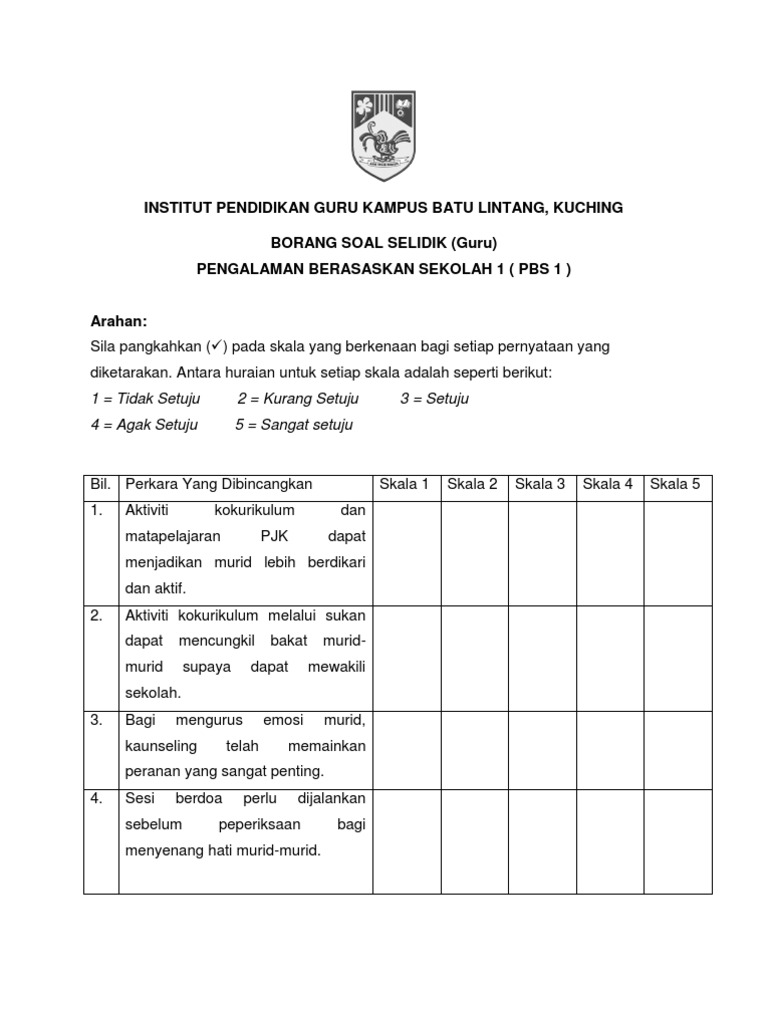 Selain itu gambar ini juga memiliki berbagai ukuran. BORANG SOAL SELIDIK K SOSIAL. BORANG SOAL SELIDIK KAJIAN IMPAK PELAKSANAAN LATIHAN GURU KEMAHIRAN BERFIKIR ARAS TINGGI KBAT MATA PELAJARAN MATEMATIK BAHAGIAN PENDIDIKAN GURU KEMENTERIAN PENDIDIKAN MALAYSIA ARAS 2-6 BLOK E13 KOMPLEKS KERAJAAN PARCEL E PUSAT PENTADBIRAN KERAJAAN PERSEKUTUAN 62604 PUTRAJAYA TEL.