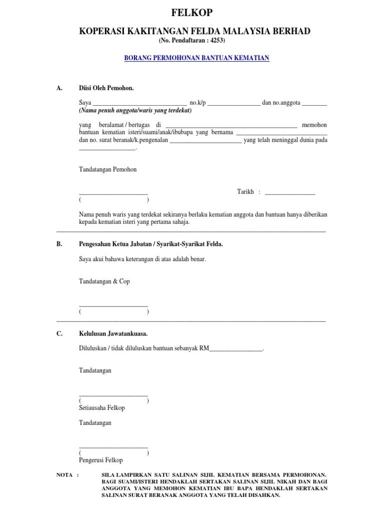 13 Borang Bantuan Kematian Felkop