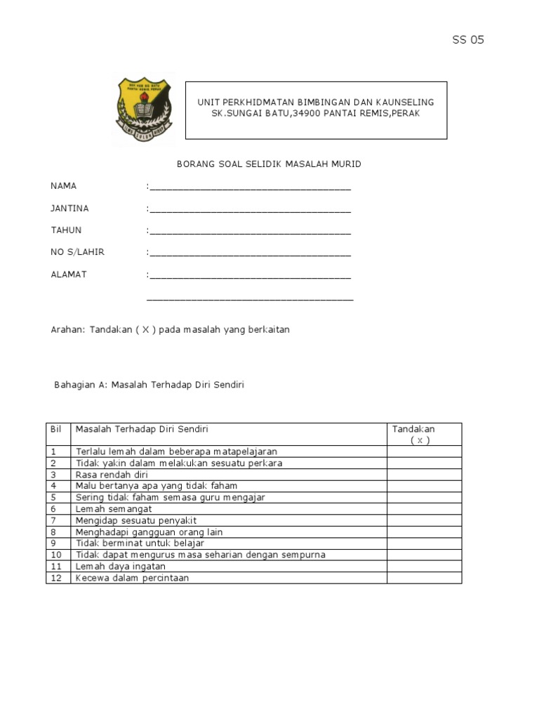 Contoh borang soal selidik contoh borang soal selidik bmi contoh borang soal selidik perpustakaan contoh borang soal selidik geografi pt3 2018 contoh borang soal selidik ums pdf contoh borang soal selidik pelancongan contoh borang soal selidik kempen contoh borang soal selidik geografi pt3 2018. Simpan Simpan Borang Soal Selidik Kaji Tahap Stress Untuk Nanti 5 5 mendukung Tandai dokumen ini sebagai bermanfaat 0 0 menolak Tandai dokumen ini sebagai tidak bermanfaat Tanamkan Bagikan. Salahuddin abdul aziz shah psa shah alam serta kerjasama daripada pelajar kss di politeknik sultan salahuddin abdul aziz shah psa shah alam.