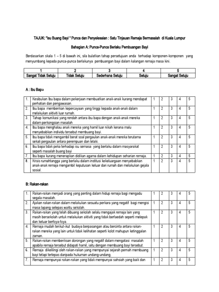 Borang Soal Selidik Mengkaji Punca Utama Masalah Sosial Dalam Kalangan Remaja