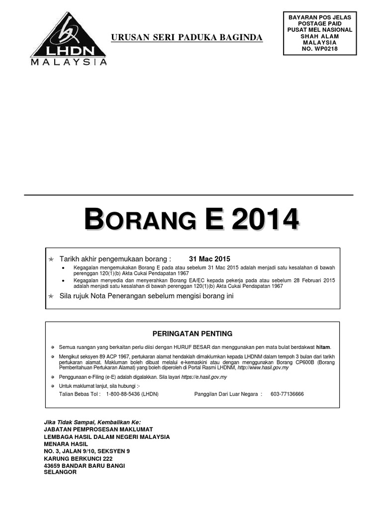 Mengisi Borang E dengan lengkap dan jelas berpandukan Nota Penerangan yang boleh didapati di. Sebenarnya Borang BEB 2020 akan dimuat naik pada 1 Mac. 2262014 Borang yang dipermudahkan penerangan mengenai cara mengisi borang serta panduan membuat pengiraan pendapatan bercukai dan cukai pendapatan telah disediakan untuk membantu pembayar cukai.