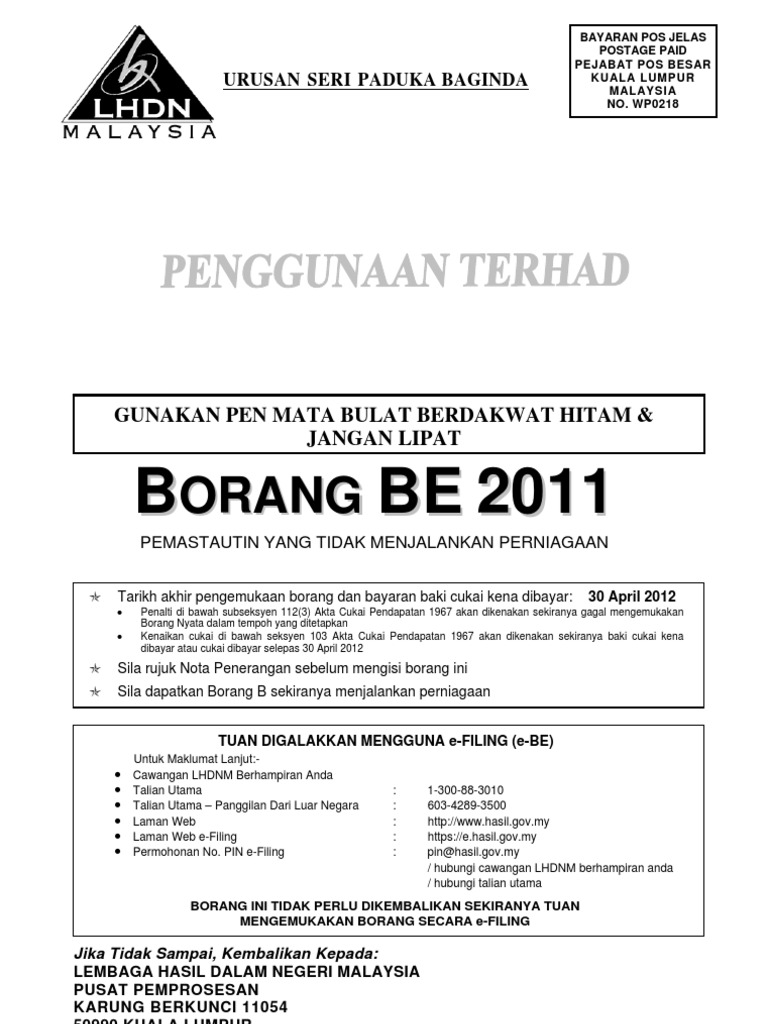 Apakah Buku Panduan Borang B. Pembayar cukai dan majikan adalah digalakkan mengguna e-Filing untuk mengemukakan Borang. Nota ini disediakan bagi membantu individu yang bermastautin di Malaysia mengikut peruntukan seksyen 7 Akta Cukai Pendapatan 1967 ACP 1967 atau dianggap bermastautin di bawah subseksyen 71 Akta yang sama untuk melengkapkan Borang BE bagi Tahun Taksiran 2018.