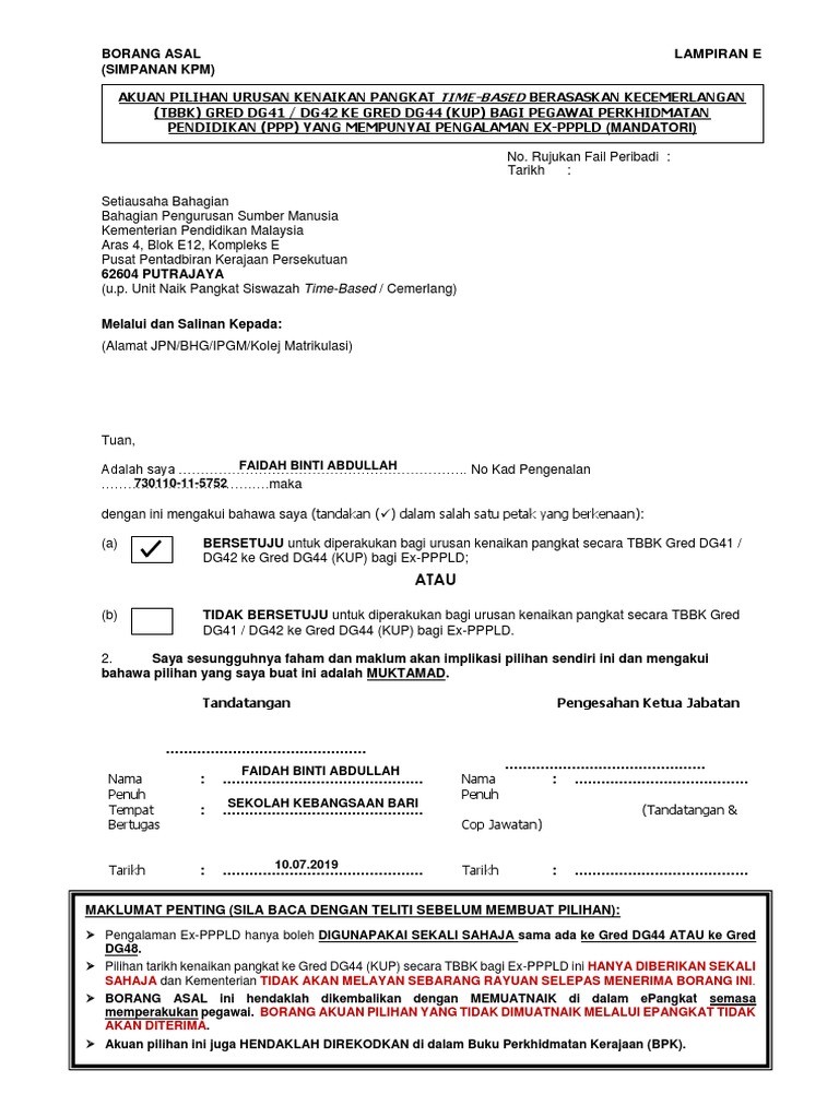 Borang Kenaikan Pangkat Dg41 Ke Dg44 2018