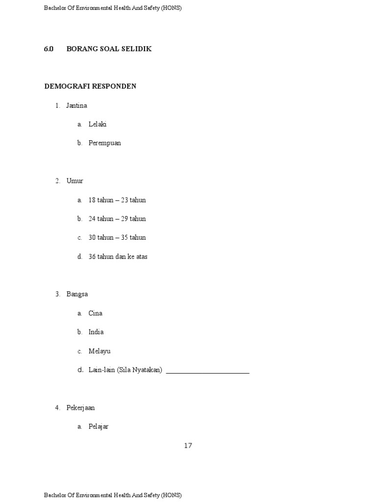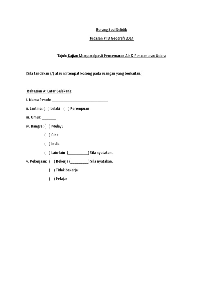 Contoh Borang Soal Selidik Keselamatan Dan Kesihatan Cute766