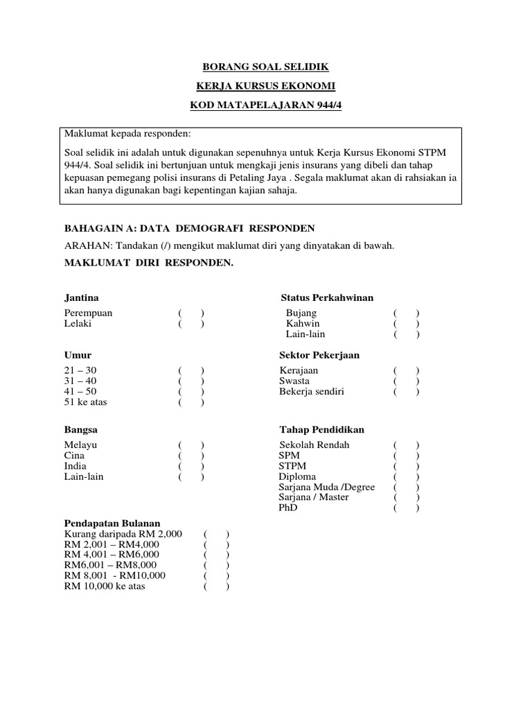 Doc Borang Soal Selidik Kajian Prissha Gomez Academia Edu