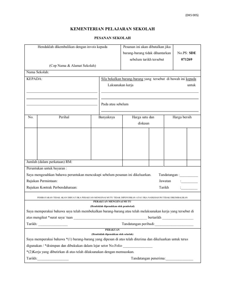 8192019 Contoh Surat Pesanan Barang Sekolah have some pictures that related one another. Contoh borang pesanan tempatan kerajaan. Laporan stock akhir laporan penjualan dan.