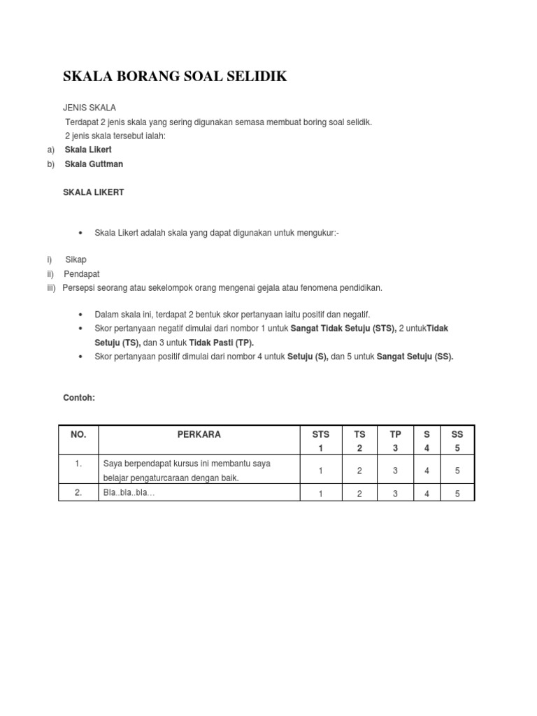 Dalam skala likert 5 mata setiap mata diberi skor. NAMA SEKOLAH TINJAUAN. Httpscute766infocontoh-borang-soal-selidik-tentang-makanan-contoh-waouw Borang Soal Selidik.